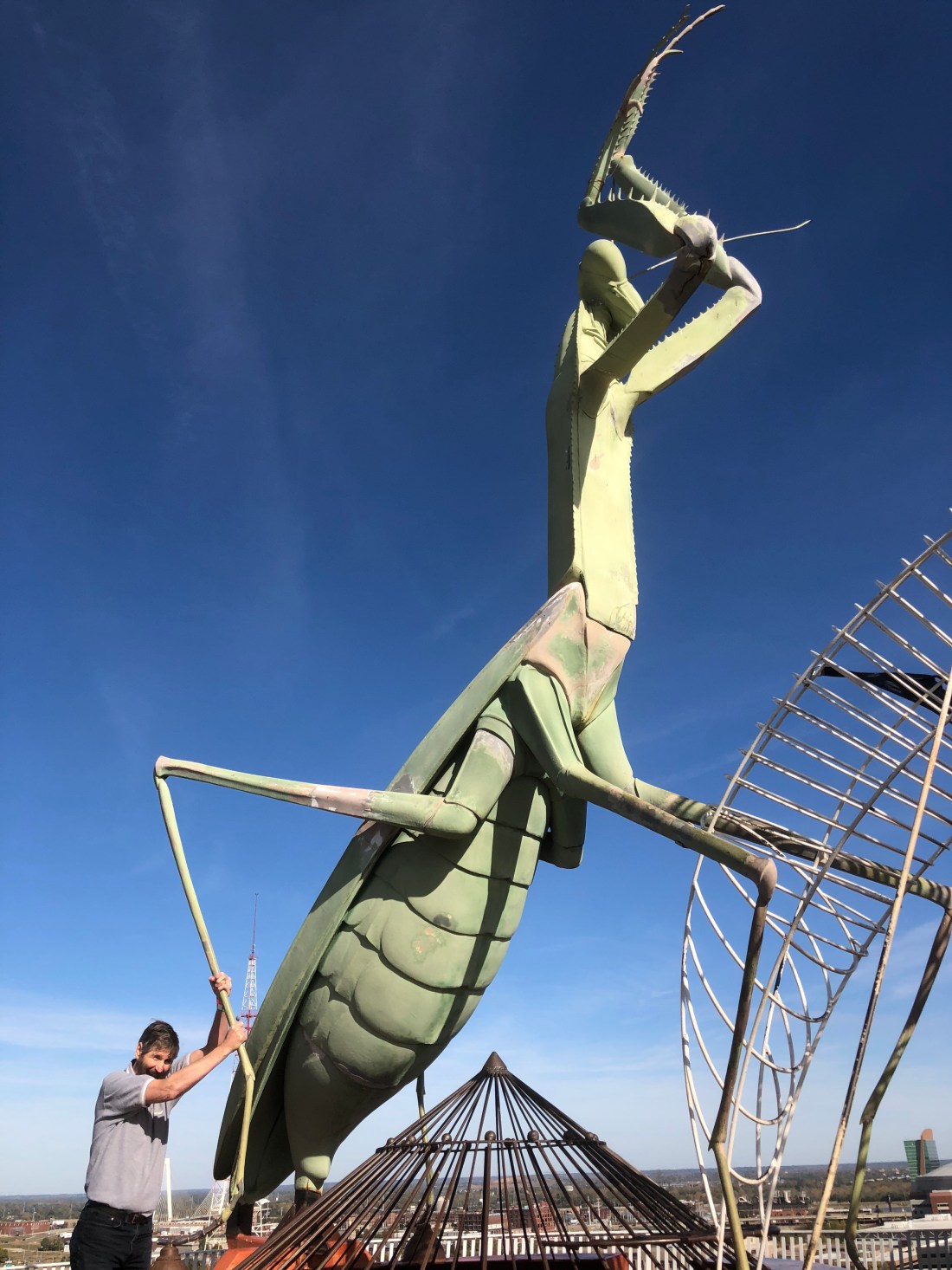 On the roof we rode a ferris wheel and Mark caught a praying mantis!