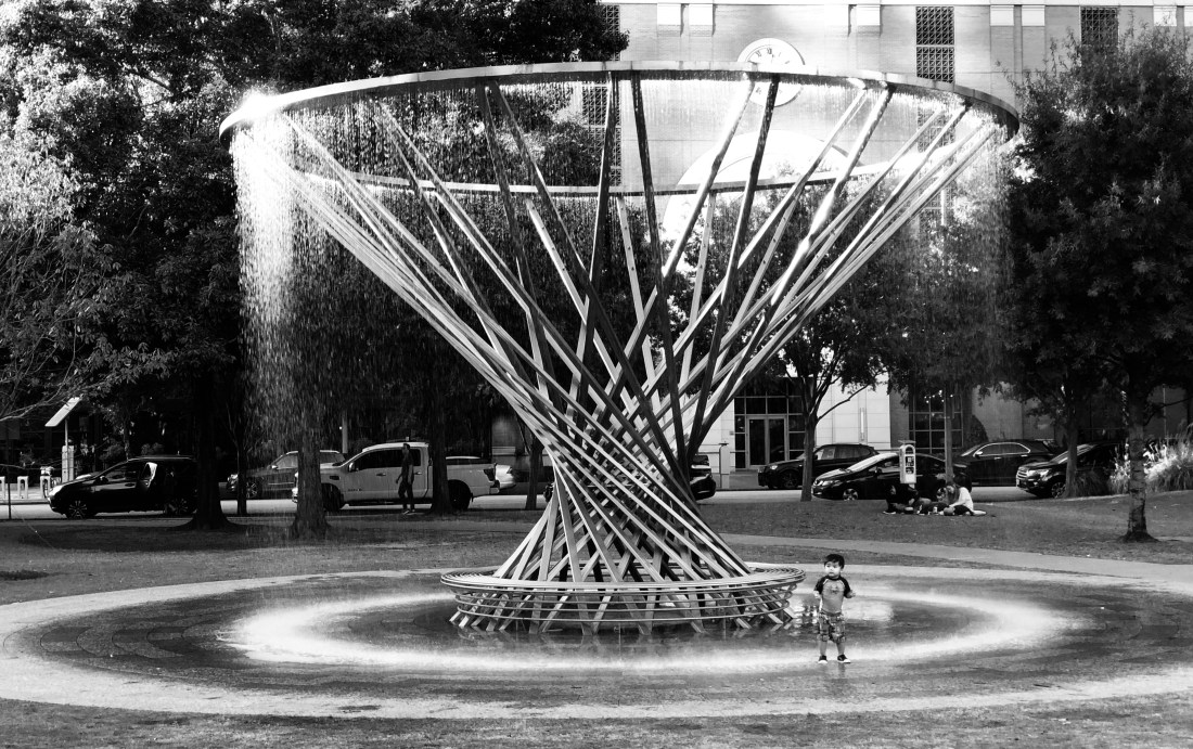 In the evening we walked around downtown, saw the baseball stadium (Astros) and a lovely park with a friendly Dubuffet sculpture. At the Bombay on Main street I ate a Frankie naan roll filled with poatoes mashed with Indian spices, onions, ginger garlic, sweet peas, carrots and tpped with pickled onions and cilantro-mint chutney. Tasty!