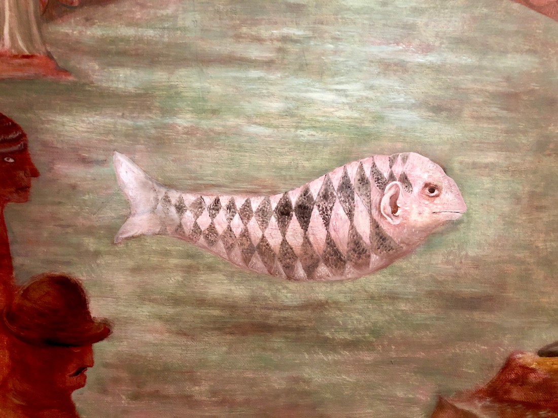 Inside the museum we saw world class works. I was happily surprised to find Guatemalan art… a small painting by Carlos Merida, “Three Princesses,” and a Mayan vase showing ball players with fun animal headdresses.