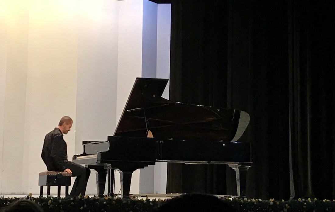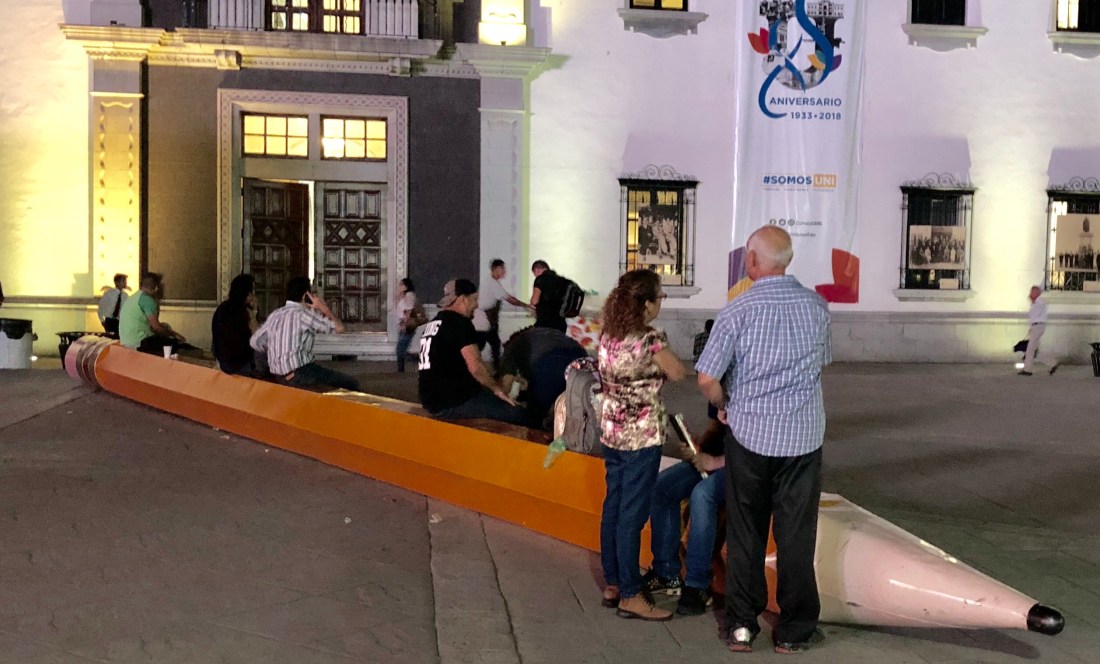 Papas asadas with tomatillo sauce and a fiesta burrito were in the menu. We headed to the University theater for a piano recital as part of the ongoing cultural festival. We ran into another giant pencil!There was a lobg line to secure free seats, but it turned out to be woth it, the pianist was outstanding.